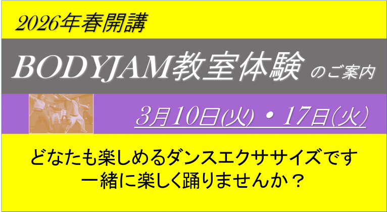 2026年春から火曜日午前に「BODYJAM30」の教室を新たに増設いたします。