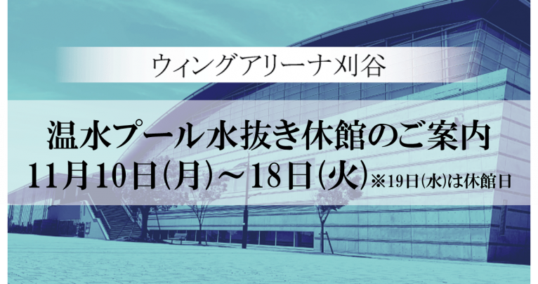 温水プールの水抜き清掃・設備整備のため休館いたします。