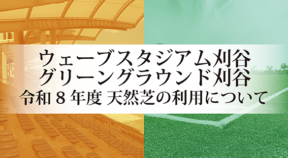 ウェーブスタジアム刈谷とグリーングラウンド刈谷(天然芝)は、アジア・アジアパラ競技大会準備のため、令和8年4月から不定期で芝養生の日を設けております。